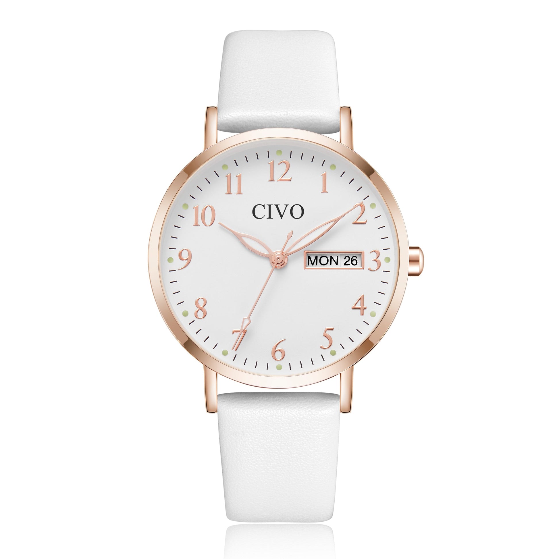 Women watches with leather strap, cool look of the round case and the puristic and clear line of the Arabic dial designed complement each other ideally and guarantee a glittering appearance.